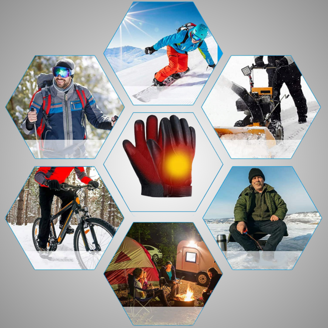 The gloves connect to an external battery, a laptop, or any compatible USB port. The system provides consistent heat to support your daily activities.